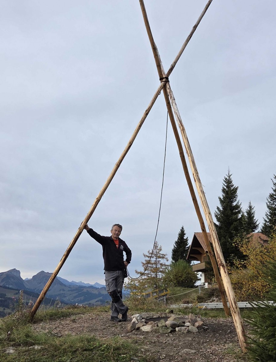 Stolz steht das brandneue Tipi auf der Erhöhung neben dem Ferienhaus. Es steht unseren Feriengästen über die Sommersaison zum Bräteln, Feiern, Übernachten zur Verfügung. Holz gibts gratis dazu.